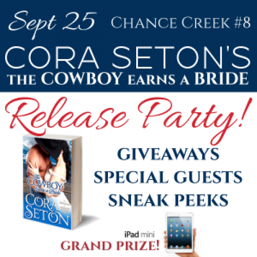 On September 22 I'm releasing Book 8 of my Cowboys of Chance Creek series, and to celebrate my new release I'm holding a Facebook Release Party on September 25! A TON of great authors are going to join me. There will be fun and giveaways all day, capped off with  a giveaway of an iPad Mini at 10 pm EST!!!! If you're…