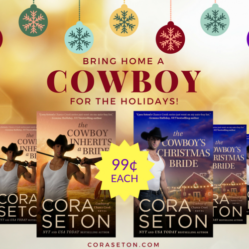 Read (or re-read) the Cowboys of Chance Creek series first before Cora’s new Turners vs Coopers series comes out next year, in which characters introduced in the first series come into their own. As a holiday treat, Cora is offering surprise 99¢ deals on her Cowboys of Chance Creek series from now until the end of December, with different books on sale each week.…