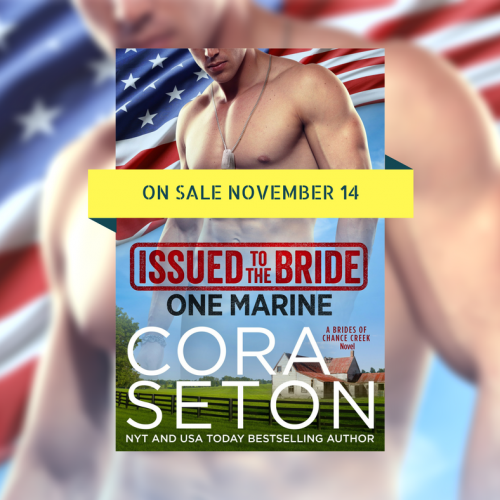 Issued to the Bride: One Marine, book 4 in the Brides of Chance Creek series, comes out November 14. Preorder your copy today! Amazon B&N iBooks Kobo Google Play Marine Logan Hughes uses humor like a shield because the twists and turns his life has taken have led him far from the path he was supposed to tread. He’s no priest,…